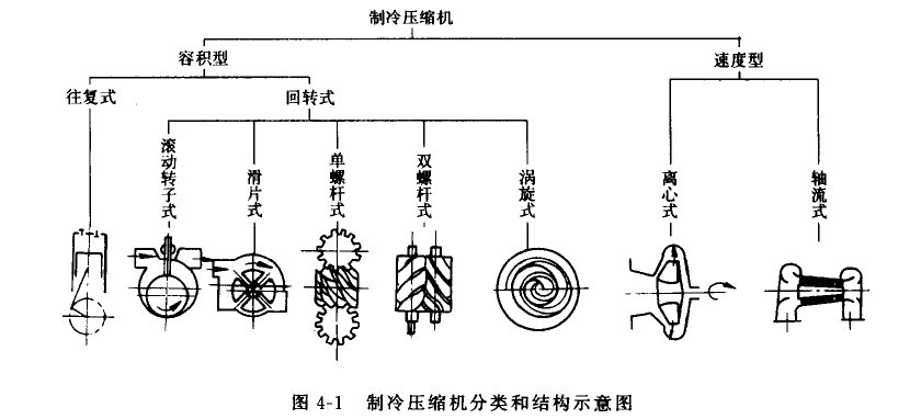 圖4—1表示了壓縮機(jī)分類及其結(jié)構(gòu)示意圖。