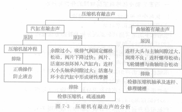 壓縮機(jī)有敲擊聲的原因分析及排除方法見(jiàn)圖7-3。