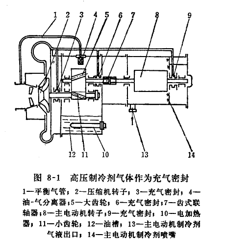 ( 11)離心式制冷壓縮機(jī)內(nèi)部漏油嚴(yán)重。潤滑油路與制冷劑之間在壓縮機(jī)內(nèi)部主要靠充氣密封3、6、9(圖8-1)來隔斷。但要做到絕對(duì)的封油作用也是不可能的。特別是機(jī)組的起動(dòng)過程,機(jī)殼內(nèi)油槽12上部空間處于零壓上下狀態(tài),當(dāng)壓縮機(jī)起動(dòng)時(shí),壓縮機(jī)入口很快由于抽吸作用而形成負(fù)壓區(qū)。通過平衡管1油槽12上部油氣流向壓縮機(jī)進(jìn)氣室,形成壓力梯度并逐漸趨于平衡。這是機(jī)組起動(dòng)過程中油漏入壓縮視流道不可避免的情況之一。起動(dòng)過程由于壓縮機(jī)蝸殼出口壓力尚未達(dá)到足夠高,對(duì)充氣密封充以制冷劑蒸氣的壓力也沒有高于起動(dòng)時(shí)軸承中潤滑油壓力,充氣密封未起到正常封油的作用,也造成油內(nèi)漏現(xiàn)象。嚴(yán)重情況下,大量潤滑油被帶入蒸發(fā)器內(nèi),油槽內(nèi)油量不足,導(dǎo)致供油壓力難以穩(wěn)定下來。可見,凡是潤滑油與制冷劑接觸的部位,總是存在油內(nèi)漏的現(xiàn)象。