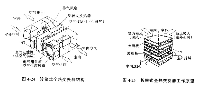 圖4-24是日立公司的轉(zhuǎn)輪式全熱交換器,它的熱交換效率為64%-70%,排廢氣比例達75%以上。