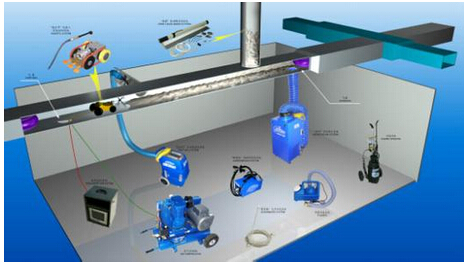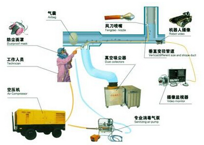 1. 用裝有攝相頭的機(jī)器人進(jìn)入管道拍攝記錄風(fēng)管內(nèi)污染狀況;