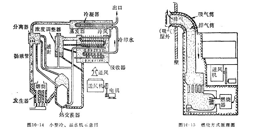 圖10-15為這種結(jié)構(gòu)的燃燒方式原理圖。其中采用平衡式燃燒,即吸氣側(cè)與排氣側(cè)的氣壓經(jīng)常保持予平衡狀態(tài),以避免大氣風(fēng)速和風(fēng)向的影響。吸排氣管置于屋外,和室內(nèi)保持氣密。這種方式還可進一步利用排氣的熱能來提高經(jīng)濟性。