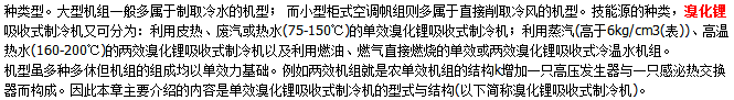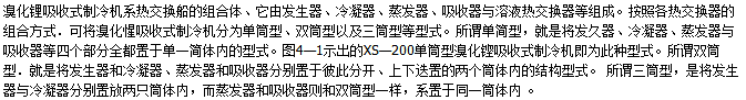 隨著溴化鋰吸收式制冷機(jī)的門益發(fā)展,新機(jī)型不斷出現(xiàn)。按制取冷量的形式,溴化鋰吸收式制冷機(jī)可分為制取冷水與冷風(fēng)兩、
