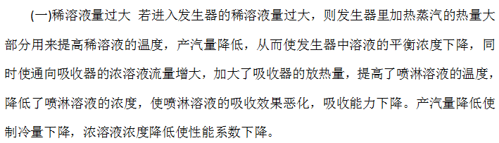 ? ??(二)稀溶液量過小 若進(jìn)入發(fā)生器的稀溶液量過小,其結(jié)果與上述情況相反。