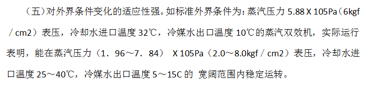 (三)以溴化鋰溶液為工質(zhì),機(jī)器在真空狀態(tài)下運(yùn)轉(zhuǎn),無臭、無毒、無爆炸危險(xiǎn)、安全可靠、 無公害、有利于滿足環(huán)境保護(hù)的要求。