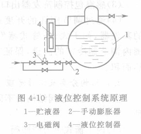 圖4-10為液位控制系統(tǒng)圖。是通過液位信號發(fā)送器啟閉電磁閥,控制進液來調(diào)節(jié)液位。