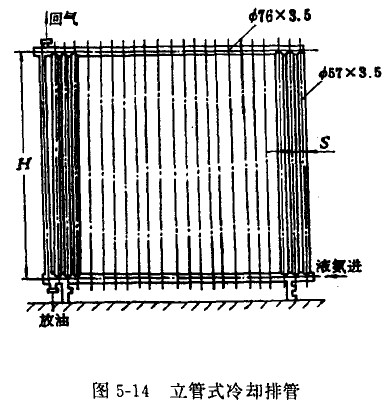 排管式蒸發(fā)器(又稱為冷卻盤管)是指管外以自由運(yùn)動冷卻空氣的蒸發(fā)器。它主要用于各種冰箱、低溫試驗(yàn)箱及冷庫的冷藏庫房中,其結(jié)構(gòu)形式有立管式、水平管式及蛇形管式等多種。圖5-14是一種立管式冷卻排管,它是由+57mm×3.5mm或+38mm×3.Omm無縫鋼管(光管)制成,沿墻壁安裝。氨液由下橫管進(jìn)入,氮?dú)庥缮蠙M管引出。這種排管的優(yōu)點(diǎn)是捧氣排油方便。缺點(diǎn)是存氨量多,由于氨液柱高度的影響使排管下部蒸發(fā)溫度增高,傳熱溫差減小。所以這種排管不宜使用在-40℃以下的冷庫。