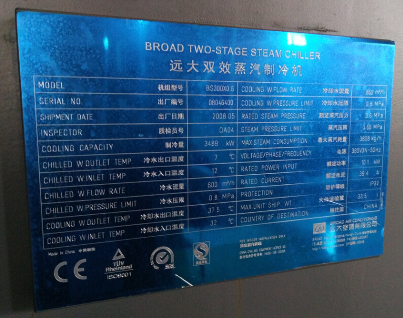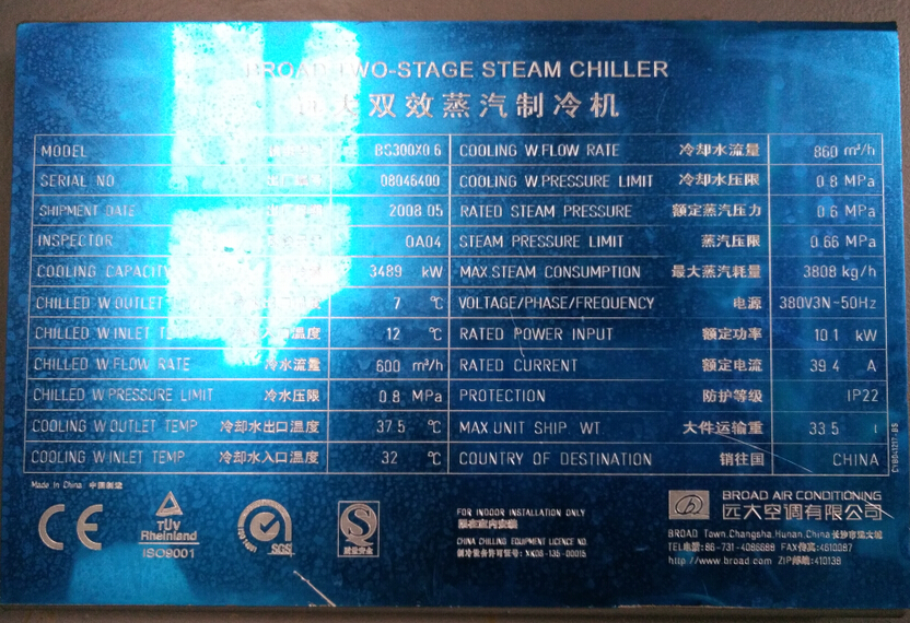 2,BS300X0.6,兩臺(tái),大件運(yùn)輸重量35.5,生產(chǎn)日期:2008年,制冷量:3489KW,冷水進(jìn)出口溫度:12-7℃,冷卻水溫度:38-32℃。本4臺(tái)機(jī)組在位運(yùn)行,運(yùn)行狀況良好,外觀9成新,有需要者請(qǐng)與韓工聯(lián)系:手機(jī) 15852710808 13806172780 (手機(jī)號(hào)碼可添加微信)
