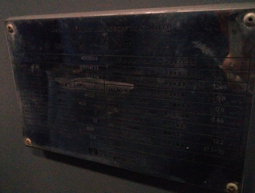 處理大型制冷機(jī)(湖南遠(yuǎn)大蒸汽型溴化鋰制冷機(jī))4臺(tái),詳細(xì)參數(shù):1,BS400X0.6, 2臺(tái),大件運(yùn)輸重量27.1+10,生產(chǎn)日期:2005年,制冷量:4650KW,冷水進(jìn)出口溫度:12-7℃,冷卻水溫度:38-32℃。