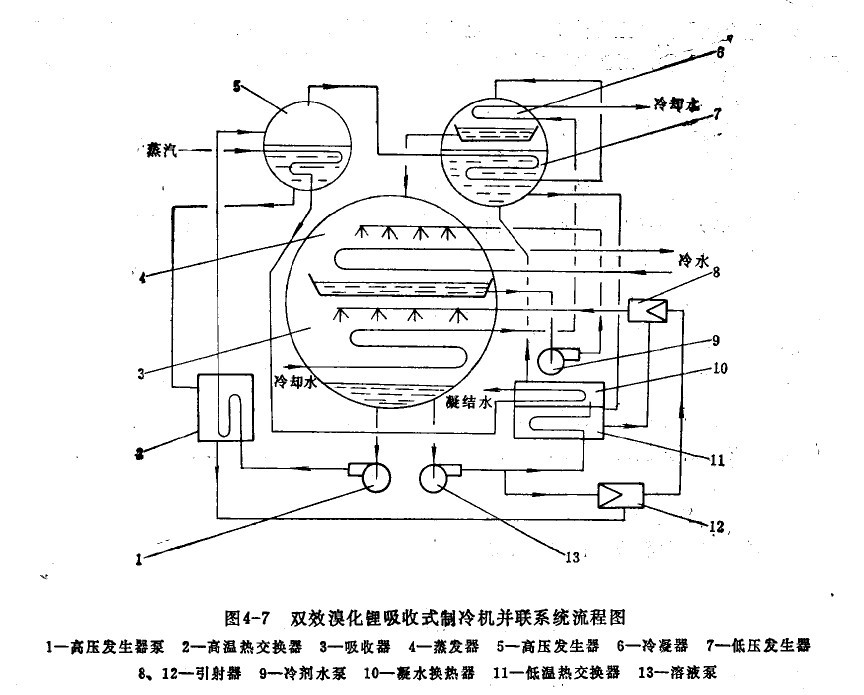 雙效溴化鋰吸收式制冷機并聯系統(tǒng)流程(附圖)