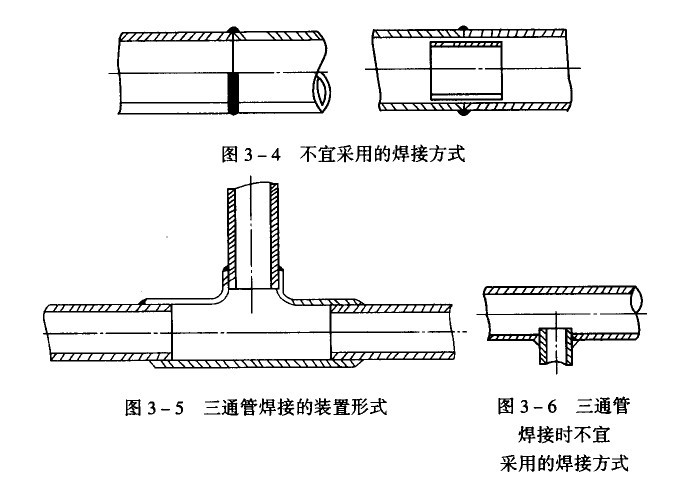 制冷設(shè)備如果要連接三通管,同應(yīng)預(yù)制三通接頭,應(yīng)按圖3-5所示的方法焊接,不宜采用如圖3-6所示的焊接方式。