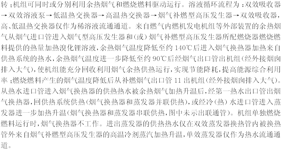 煙氣熱水補燃單雙效復(fù)合型溴化鋰吸收式制冷機的運行