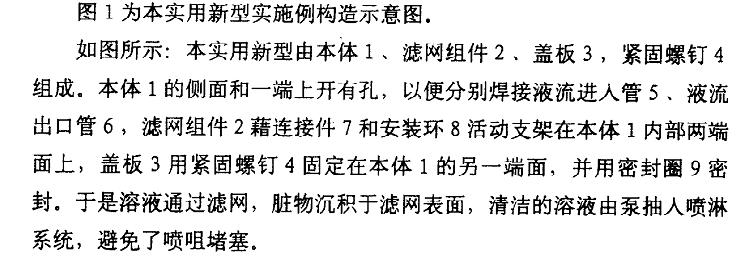 溴化鋰制冷機系統(tǒng)過濾器,涉及制冷機系統(tǒng)過濾器,解決結(jié)構(gòu)簡單、維護方便問題。包括本體、過濾器組件、蓋板及聯(lián)結(jié)件,本體側(cè)有液流進入管,一端為液流出口管,其特征是:在本體一端,即本體與液流出口管的連接處設(shè)有安裝過濾器組件的連接件,本件另端與蓋板相接處設(shè)有安裝過濾器組件的安裝環(huán),該安裝環(huán)固裝在本體上并設(shè)有蓋板安裝螺孔。用于溴化鋰吸收式制冷機。