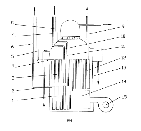 圖4為本實(shí)用新型采用的雙管束補(bǔ)燃發(fā)生器的實(shí)施例一結(jié)構(gòu)示意圖。