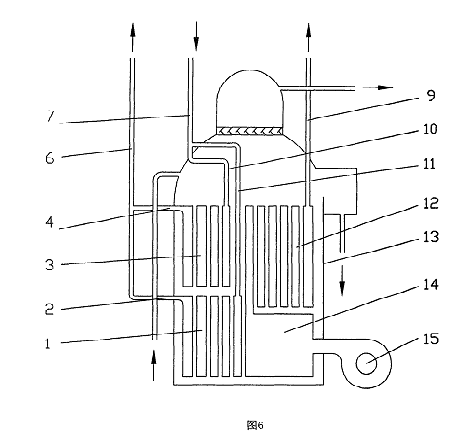圖6為本實(shí)用新型采用的雙管束補(bǔ)燃發(fā)生器的實(shí)施例二結(jié)構(gòu)示意圖。