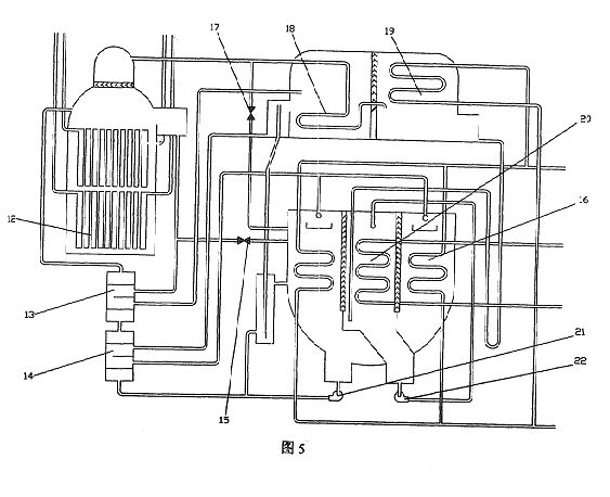 圖5為配置圖4所示煙氣發(fā)生器的煙氣型溴化鋰吸收式冷熱水機(jī)組的結(jié)構(gòu)示意圖。
