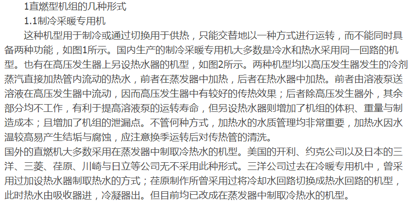 吸收式冷熱水機(jī)組型式的分析--直燃型溴化鋰機(jī)組