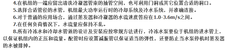 3.機(jī)組應(yīng)放在室溫為4.4-43.3℃的機(jī)房內(nèi),機(jī)組的周圍和上方應(yīng)有足夠空間,以便進(jìn)行日常的維護(hù)工作。
