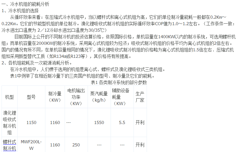 關鍵詞: 收式制冷機組 螺桿式冷機組 能源消耗