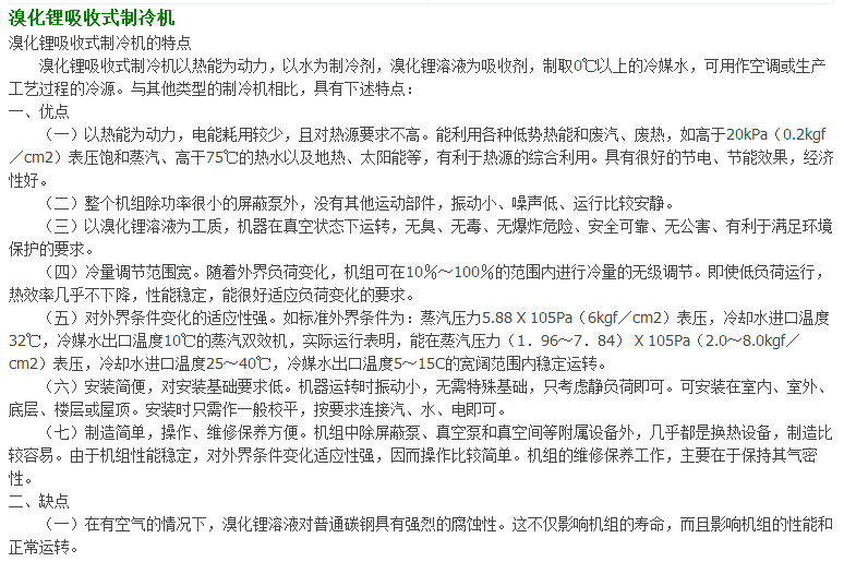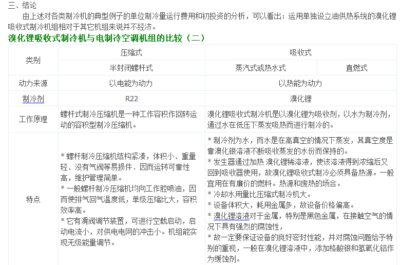 溴化鋰吸收式制冷機與電制冷空調(diào)機組的比較(一)