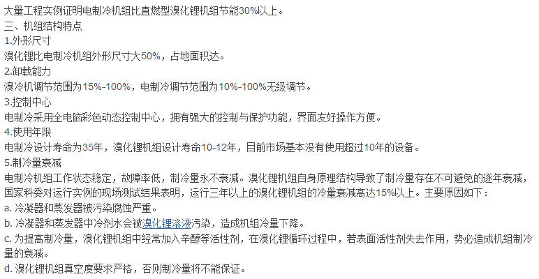 直燃型溴化鋰制冷機(jī)組比電制冷機(jī)組單價(jià)高30%-50%;