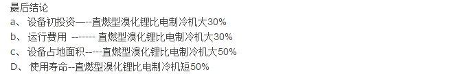 由于溴化鋰機(jī)組冷卻系統(tǒng)比電制冷大30%,相應(yīng)的機(jī)房安裝費(fèi)增加30%;
