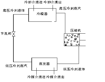 根據(jù)熱力學(xué)的基本原理我們知道,一般的制冷循環(huán)由四個主要部件組成:壓縮機、冷凝器、節(jié)流閥和蒸發(fā)器,其制冷原理如下(圖1)