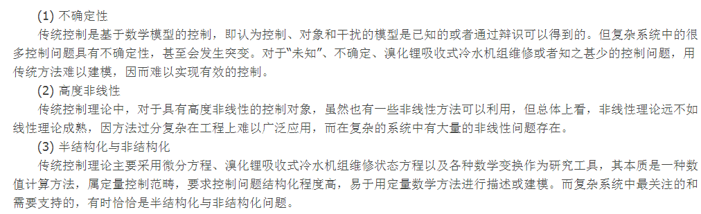 對于像中央空調(diào)系統(tǒng)這樣的大型復(fù)雜過程(或?qū)ο?的控制實現(xiàn),一般是按某種準(zhǔn)則在低層把其分解為若干子系統(tǒng)實施控制,溴化鋰吸收式冷水機(jī)組維修在上層協(xié)調(diào)各子系統(tǒng)之間的性能指標(biāo),使得集成后的整個系統(tǒng)處于某種意義下的優(yōu)化狀態(tài)。在控制中存在問題主要表現(xiàn)在: