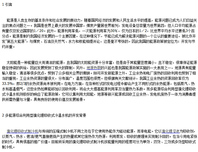 多能源利用型溴化鋰吸收式冷溫水機(jī)的開發(fā)應(yīng)用