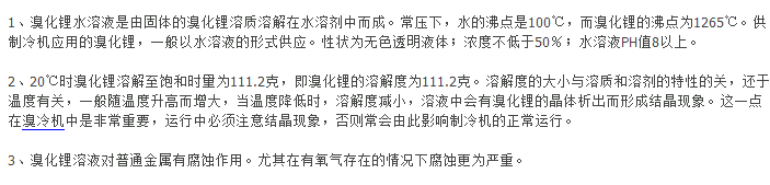 在溴化鋰吸收式制冷機(jī)中,水作為制冷劑用來產(chǎn)生冷效應(yīng),溴化鋰溶液作為吸收劑,用來吸收產(chǎn)生冷效應(yīng)后的冷劑蒸汽。因此,水和溴化鋰溶液組成制冷機(jī)中的工質(zhì)對(duì)。
